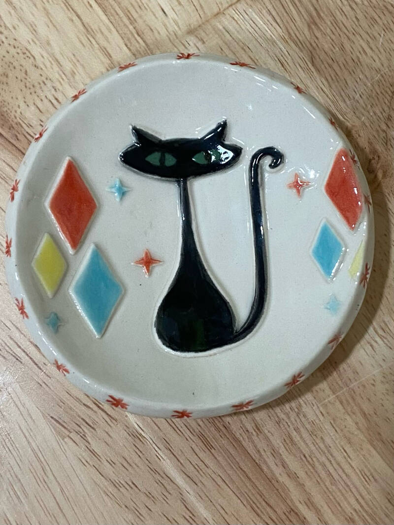 Trinket dish Mid century Atomic Cat.